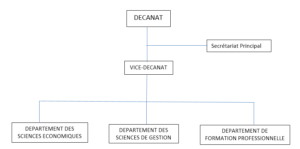 La FASEG compte un décanat, un secrétariat principal, un vice-décanat et trois départements, notamment le département des sciences économiques, le département des sciences de gestion et le département de formation professionnelle.